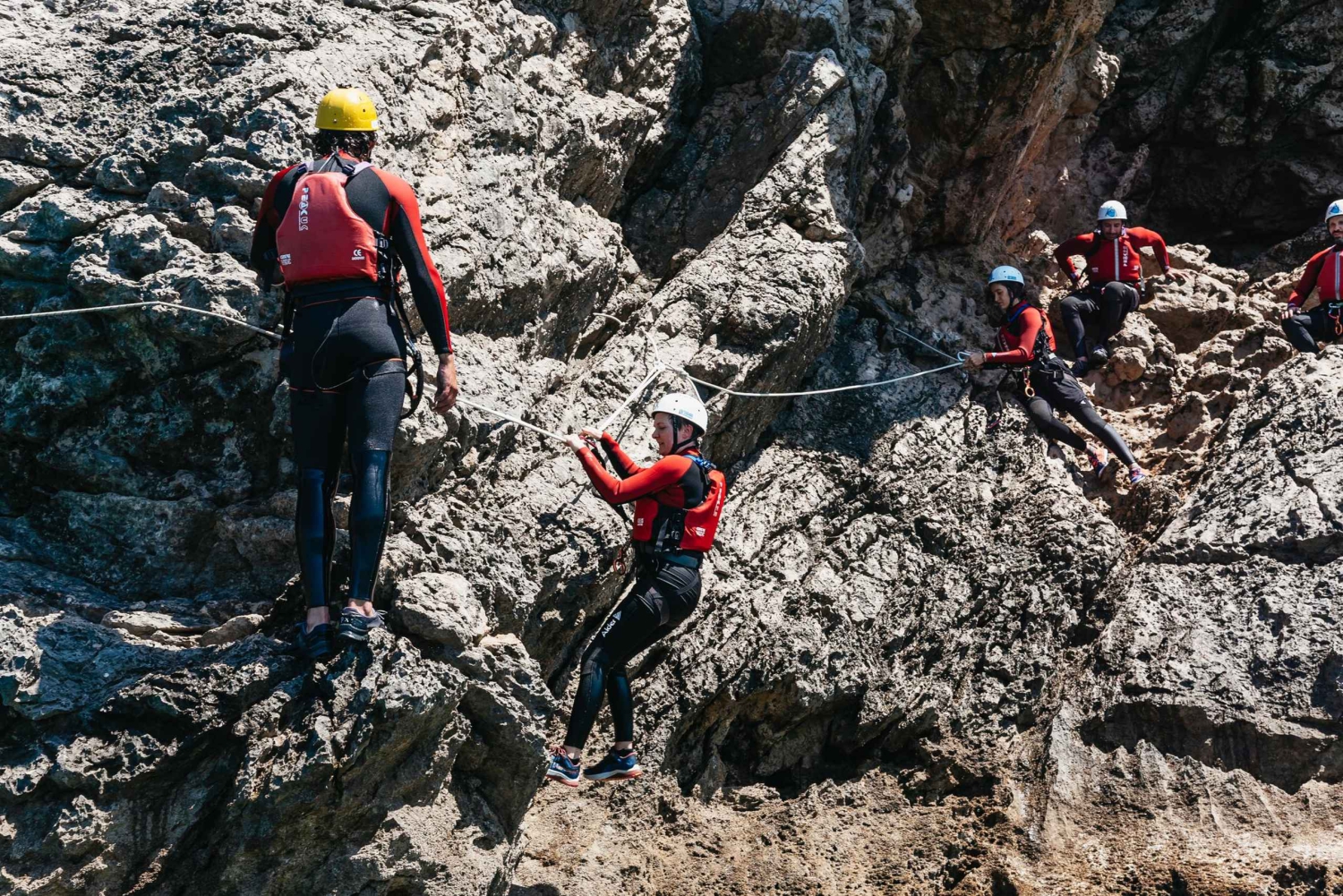 Erkunde die Küste von Portugals malerischem Arrábida-Naturpark bei einem aufregenden Coasteering-Abenteuer. Klettere und seile dich mit professionellen Guides von Sesimbra aus entlang der Küste ab und erlebe die Schönheit der Gegend. Starte mit einer Abholung in Lissabon oder triff deine Guides in Porto de Abrigo in Sesimbra. Rüste dich mit deiner gesamten Coasteering-Ausrüstung aus, einschließlich Helm, Schwimmweste, Anzug, Abseilgerät und Klettergurt. Du wirst jederzeit von professionellen und erfahrenen Guides begleitet. Entlang der zerklüfteten Küste kannst du klettern, dich abseilen, schwimmen und wandern. Bestaune die atemberaubenden Landschaften, während du schwimmst, wanderst, kletterst und springst. Klettere über großartige Felswände, die sich über Buchten stürzen. Am Ende des Erlebnisses kannst du dich auf der Rückfahrt mit dem Boot nach Sesimbra entspannen und zurück nach Lissabon fahren.Includes