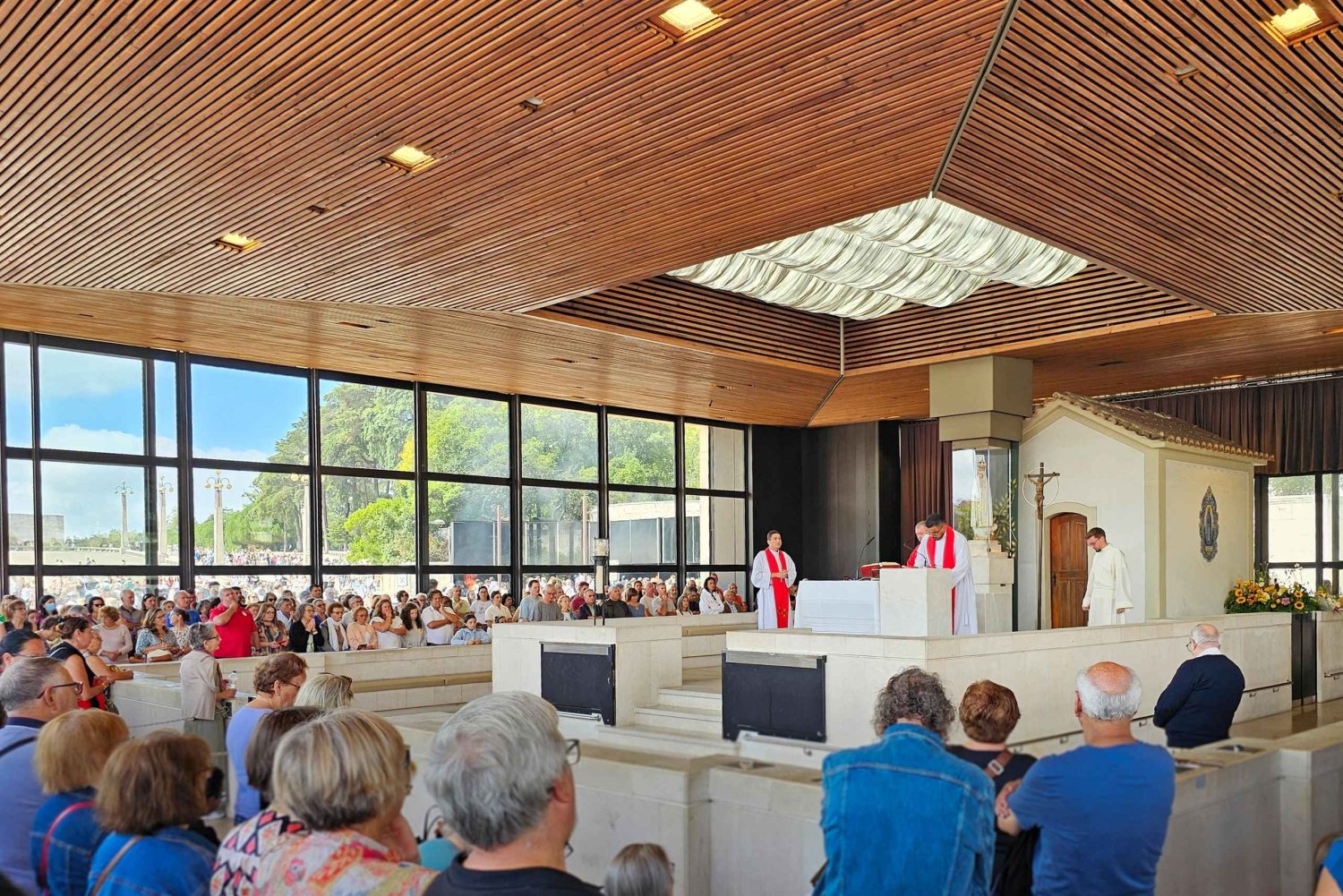 Meet your Around Lisbon guide at your local Lisbon hotel for your day trip to Fátima, Batalha, Nazaré and Óbidos. Hop aboard your air-conditioned minivan and drive about 115kms north of Lisbon and arrive to Fátima, a city that developed after the apparitions of Virgin Mary back in 1917. At Fátima Sanctuary you'll find an unique ambiance of devotion, whether you're a believer or not, it's impossible to feel indifferent at this place of great spirituality that receives millions of pilgrims each year. Learn all about the legend of Virgin Mary's apparitions to three shepherd children in 1917 and what became the most adored devotion in Portugal: the one one Our Lady of Fátima. Continue to Batalha and visit the best example of late Gothic (14th century) architecture in Portugal, the Batalha Monastery, a UNESCO World Heritage site. It was built in commemoration of the 1385 battle (batalha) of Aljubarrota against the Castillians and its original name is in fact Mosteiro de Santa Maria da Vitória (Monastery of Saint Mary of the Victory). Stop at Nazaré, a charming seaside town where local fishermen haul in fresh catches from the ocean. Don't miss the oportunity of tasting this fresh fish at lunch (own expense). After, learn all about the legend of Nazaré and how the Virgin Mary had a miraculous intervention in 1182, which saved the life of the Portuguese knight Dom Fuas Roupinho (possibly a Templar) of falling down a 100 meter cliff, while he was hunting deer one morning in a dense fog. On this place it was built a chapel. Nowadays Nazaré is also known for being the capital of big wave surfing, holding the record of the largest wave ever ridden (24 meters), in 2011. End the day in Óbidos, a fairytale medieval town surrounded by ancient walls. Walk through cobbled streets lined with whitewashed houses, explore artisan shops, and taste the famous ginjinha liqueur. Feel the charm of a town that once belonged to Portuguese queens and still preserves its timeless magic. As the sun sets, relax on the comfortable drive back to Lisbon, carrying with you the stories of miracles, battles, and heritage that shaped Portugal.Includes