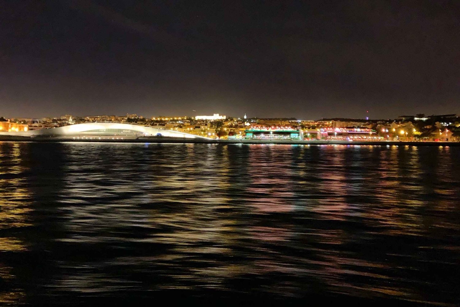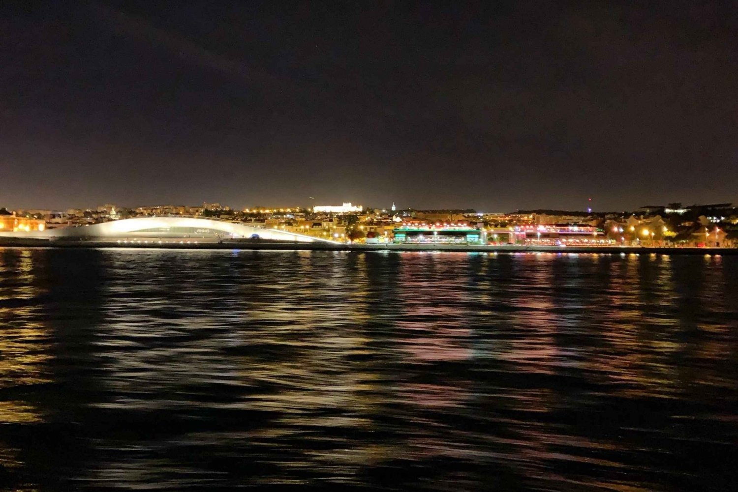 Departing from marina Doca do Bom Sucesso in Belem, sail up the Tagus river passing by several monuments that will be illuminated at night. Admire the city sights of Lisbon like the Belem Tower, and the Museum of Art, Architecture and Technology museum. See the discovery monument, Jeronimos Monastery, Ajuda palace, christ statue, 25th of April bridge, commerce square, and Saint George castle, amongst others. The crew will share information about the monuments that you pass by, but the idea is to relax and enjoy the stunning nighttime cityscape. During a full moon, the scenery is even more breathtaking.Includes