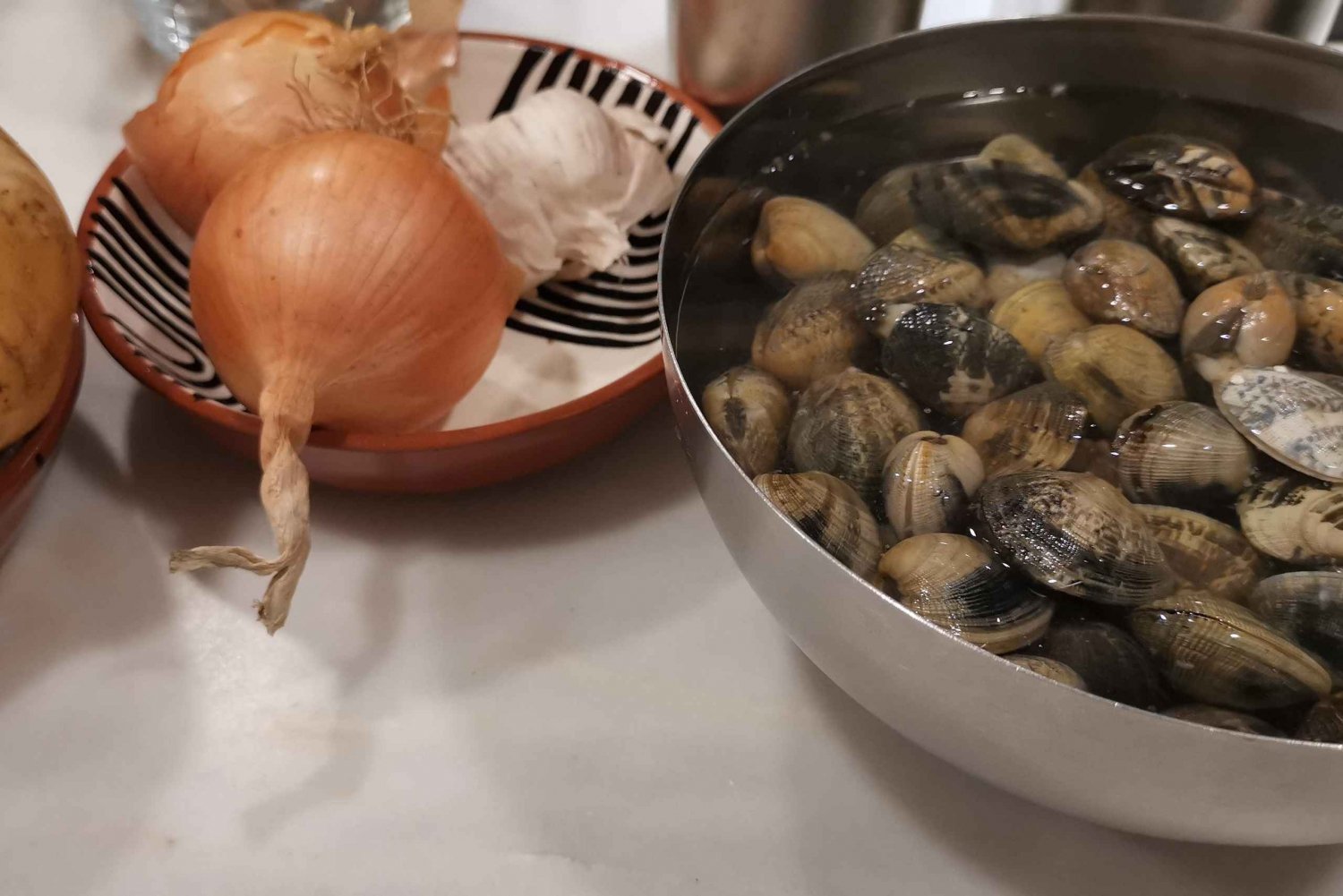 Embarquez pour un voyage culinaire à travers le marché alimentaire de Lisbonne. Apprenez à sélectionner les ingrédients les plus frais et interagissez avec les vendeurs locaux. Ensuite, utilisez vos achats pour préparer un délicieux repas. Retrouvez votre guide et votre chef à notre lieu d'hébergement et marchez jusqu'au marché alimentaire. Découvrez l'histoire du marché et son importance pour la communauté locale. Découvrez les meilleurs étals pour acheter du poisson frais, des fruits de mer et d'autres produits locaux. En parcourant le marché, vous apprendrez à sélectionner les meilleurs ingrédients pour votre repas. Interagissez avec les vendeurs locaux et découvrez l'importance de soutenir les agriculteurs locaux. Après avoir acheté vos ingrédients, retournez dans la cuisine pour préparer un délicieux repas. Apprenez à préparer un plat portugais traditionnel en utilisant les ingrédients que vous avez achetés. Enfin, asseyez-vous pour déguster votre repas.Includes