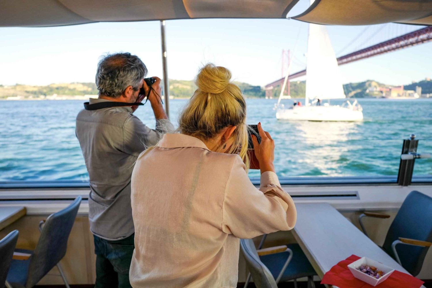 Wskakuj na pokład najnowocześniejszych i najwygodniejszych łodzi w mieście i odkrywaj kultowe zabytki Lizbony z nowej perspektywy na wodzie. Wybierz swoje ulubione miejsce: pod zadaszeniem lub pod gołym niebem. Potem usiądź wygodnie i zrelaksuj się, gdy zacznie się podróż w obie strony. Kup autentyczne przekąski i napoje, aby delektować się nimi na pokładzie. Twoja podróż zaczyna się na południowej i południowo-wschodniej stacji rzecznej przy Placu Handlowym, historycznym sercu miasta. Stamtąd popłyniesz wzdłuż wybrzeża Lizbony, mijając słynne miejsca, takie jak Most 25 kwietnia, Pomnik Odkrywców i majestatyczna Wieża Belém. Zrób kilka zdjęć i ciesz się widokami, gdy będą mijały. Skorzystaj z udogodnień naszej pokładowej kawiarni i zafunduj sobie przekąskę, ciesząc się podróżą i widokami. Miej oczy szeroko otwarte – możesz nawet dostrzec delfiny! Nasz kapitan od czasu do czasu zboczy z kursu, żebyś mógł/mogła zobaczyć te przyjazne stworzenia z bliska.Includes